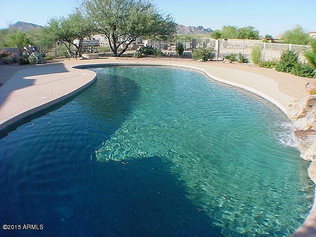 This is a real nice Santa Fe style home with a great room and rear kitchen to enjoy the views of the Superstitions and landscaped yard. If you had horses you could see them too! There are parts of pipe fencing installed already. The inside has split bedrooms with diagonal tile in all the right places. 10 foot ceilings for the open airy feeling. There is a surround pre wire in the great room along with a TV wall mount already installed. The pool is pebble sheen with lots of cool deck and pavers. NO HOA means plenty of room for your TOYS etc. AT $365,000 THIS IS THE SELLERS BOTTOM LINE, NO INCENTIVES AT THIS PRICE. AS-IS, NO REPAIRS.