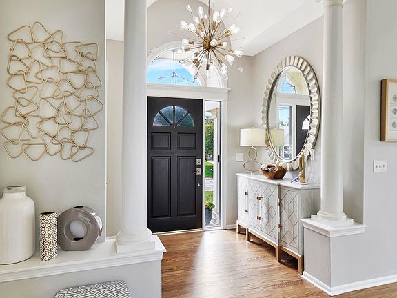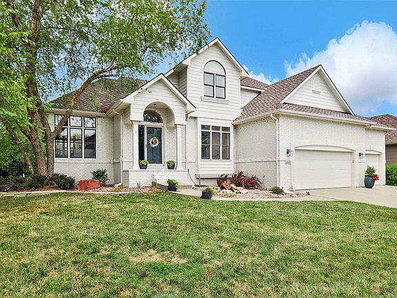 Welcome home to this stunning 4-bedroom, 3.5-bathroom showstopper, nestled on a quiet cul-de-sac in highly sought-after White Tail. The charming white painted exterior exudes curb appeal, setting the tone for what awaits inside. Upon entry, you’re greeted by a beautiful staircase with elegant carpeting, serving as a striking focal point in the welcoming foyer. The home’s interior showcases gorgeous hardwood floors throughout the main living areas, enhanced by updated light fixtures that add a touch of modern sophistication. The two-story living room is bathed in natural light, thanks to an abundance of windows that create a bright and inviting atmosphere. The heart of the home is the large eat-in hearth kitchen, well suited for gatherings and everyday living. It offers a cozy fireplace, spacious island with a prep sink and a second garbage disposal, along with sleek quartz countertops, white cabinetry, and a herringbone pattern subway tile backsplash. Under-cabinet lighting, updated sinks, and modern hardware add to the kitchen's polished aesthetic. A built-in desk and bookshelves make this space as functional as it is beautiful. The adjacent laundry room, beautiful powder room, and formal dining room, perfect for entertaining, complete the main level. Upstairs, the luxurious primary suite offers a serene retreat, featuring a coffered ceiling, bayed windows, a soaker tub, separate shower, a large vanity with dual sinks plus a make-up vanity, and an expansive walk-in closet. Two additional spacious bedrooms share an updated hall bath. The second-story HVAC system, only a few years old, ensures comfort and efficiency year-round. Entertaining is effortless in the fully finished basement complete with new vinyl flooring and a rec room with a cozy fireplace and a beautifully redone wet bar with new countertops and a stylish backsplash. Additionally, the basement offers a large bedroom, bathroom, and ample storage. Extend your living space outdoors; the large fenced backyard offers a perfect setting for outdoor enjoyment, complete with a sprinkler system, deck, and patio. The attention to detail is evident in every finish, from the pretty tile accents to the great lighting that highlights each space. Located in the highly touted Andover School District with lower Sedgwick County taxes, this gem offers easy access to highways, exercise paths, Crestview Country Club, shopping, dining, and more. This property is a must see, combining elegance and comfort in an unbeatable location. Don't miss your chance to make it your own!