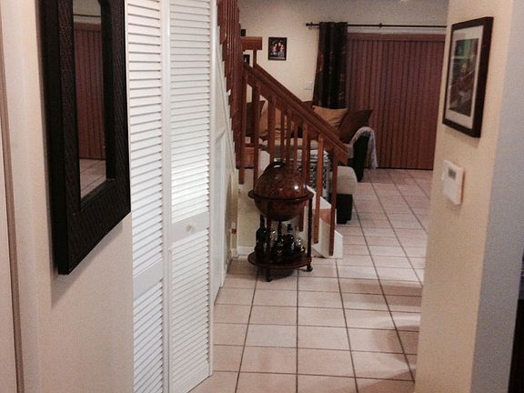 2 story townhouse with 2 bedrooms and 2.5 bathrooms. Both bedrooms have a bathroom inside of the rooms. Laminate flooring on stairs and whole second level. Just installed this year. Kitchen remodeled. Bathroom remodeled this year. This is a lakefront property. Ready to move in. Accordion shutters on all windows with locks on the shutters (No hassle of putting them up during hurricanes).