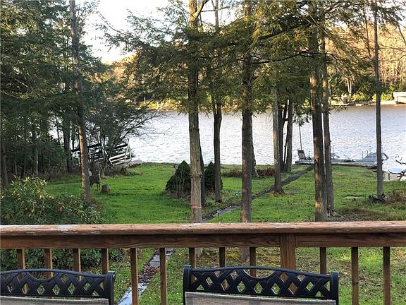 This is a waterfront property with a very nice lot on Peninsula Drive; a detached garage is included; driveway is paved; boat dock area on the water. House is being sold as is and in need of repairs. Opportunity here for a contractor to repair or redo into a lakefront home.