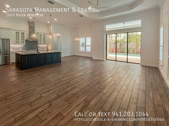 This is a 3 bedroom 2 bathroom Neal Signature Custom Built Montecito floorplan pool home in the gated community of River Wind. This home features a tile roof, a paver driveway and lanai, a lap pool, 3 car garage and so much more! The interior of the home features wood-grain tile flooring throughout the home. The high trey ceilings cover the living area and the master bedroom. The open floorplan centers around a large living room, kitchen and dining area. The kitchen features an oversized island with breakfast bar and navy cabinets with gold hardware which contrast well with the white quartz countertops. The kitchen also has stainless steel appliances, a convection microwave/oven, vented hood, tile backsplash, and under cabinet lights. The living area features large sliding glass doors that lead out to the large screened & covered lanai with a 9 ft x 33ft lap pool. There is also a den/office with glass French doors just off the living room. The master bedroom features trey ceilings, 2 walk-in closets, and an ensuite bath with navy cabinets, quartz countertops, a large walk-in shower and dual sinks. There are 2 spare bedrooms that both have walk-in closets. The spare bathroom also features quartz countertops and a tub/shower combo. The laundry room also features navy wood cabinetry, quartz countertop, decorative tile backsplash, utility sink and leads to the large 3-car garage. River Wind offers scenic walking trails, a neighborhood pavilion/tiki hut, and a private launch to the Manatee River. The community is located on Upper Manatee River Road just off The Rye Road / Rye Wilderness Preserve Park and a short car ride to Lakewood Ranch's facilities and the UTC complex. It is close to endless shopping, fine dining, A+ rated schools, medical, Polo, multiple international airports, and the interstate which provides ease for commutes to Sarasota or Tampa. Please allow up to 3 weeks after lease signing for community approval before move-in. We score every application. If an application doesn't score high enough, the resident may be required to place the equivalent of two months' rent in a security deposit. Please be aware that leasing this property includes a non-optional Home Assistant Services Package that will cost an additional $30 per month. These services and their cost are separate from Tenant's monthly rent payment and all other payments described in the Lease or any separate Lease addendums. 2 Pets Max 40 lbs Max, Dogs with Breed Retrictions Rye Wilderness Preserve Park, Shopping, Fine Dining, A+ Schools Manatee County Schools 3 Car Garage Oversized Island with Breakfast Bar and Navy Cabinets with Gold Hardware, White quartz Countertops, Stainless Steel Appliances, Convection Microwave/Oven, Vented hood, Tile Backsplash, Under Cabinet Lights Open Floorplan, Den/Office, Montecito Screened Patio and Pool, Walking Trails, Neighbhorhood Pavillion/Tiki Hut, Kayak Launch Pool Care Included Three Car Garage Trees / Shrub Care Included