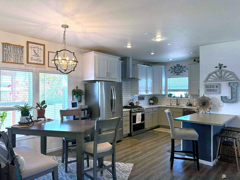 Nestled in desirable Magnolia Village 55+ park, this spectacular single wide (built in 2021) has so much to offer! Interior features plenty of natural light, spacious open concept floor plan with 2 large bedrooms, separate den/office area & 2 baths. Stunning decorative accents including recessed lighting, LVP flooring, custom countertops & cabinetry, stainless steel appliances, subway tile backsplash, breakfast bar, pantry, cozy living room and dining area, wood blinds, private utility room & plenty of storage space. Home is unique in that it has 3 exits (front, side & rear doors). Exterior highlights front patio with Trex composite decking/stairs, concrete driveway with covered carport (12 x 30), private backyard with 6' raised block walls, storage shed, decorative patio lighting, water softener, R/O system. Don't miss your chance to show & see this beautiful home where you own your own land! Incredibly low HOA fees with heated community pool, spa, clubhouse & activities.