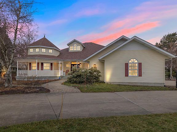 Located in desirable Fairfield Subdivision near Kesling Park, this 4,816 sq ft ranch home has stunning views of Lake Fairfield that can be seen throughout the back of the home. The back porch on the top and basement level stretch across the entire back of the home and features a partially screened in area. The entryway features 12 foot high ceilings and the living room has a fireplace with beautiful built in shelving and storage around it. The main bedroom suit has an office space, walk-in closet, and massive bathroom featuring a double vanity, vaulted ceilings, a jacuzzi and walk-in shower. The kitchen has intricate custom cabinetry and plenty of storage. The main floor laundry also has plenty of cabinet space and an extra fridge. The full, walk-out basement is partially finished and perfect for hosting with a second fireplace. There is an additional bedroom, walk-in closet and bathroom finished. House has Geothermal heat along with an entire house generator. This won't last!