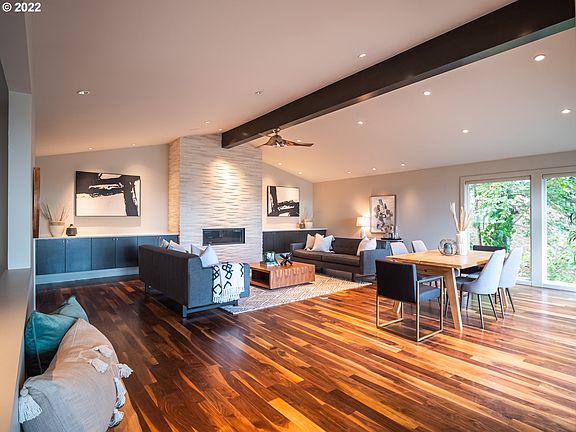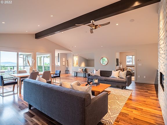 Stunning sophistication perched on top of the West Hills with sweeping Mt Hood,river and city skyline views! Immaculately updated thru-out,gleaming walnut floors,open living-dining room with vaulted ceilings, fireplace and wall of windows. Dreamy chefs kitchen w/marble counters, eating bar,french doors to new deck, perfect for entertaining. Two primary suites + media/bonus room (could be 3rd bedroom). Peaceful sanctuary above the city just minutes from NW 23, Zupans, restaurants, bars, coffee.