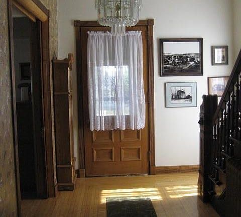 Historical home with lots of old charm, heated shop and garage, hot tub, walk out basement, sprinkler system, Huge walk in closet in master bedroom, new roof and some new windows.