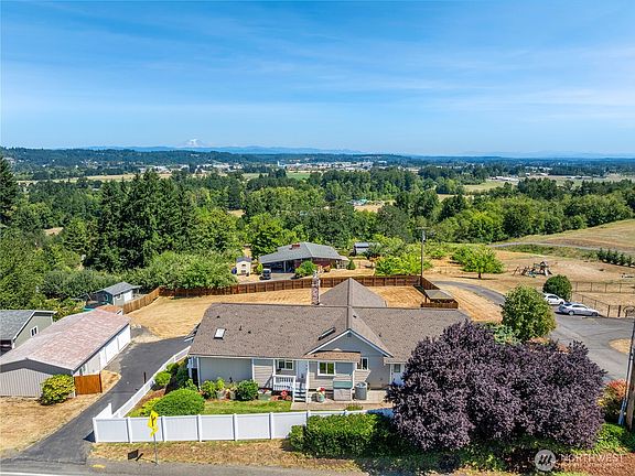 This remarkable 3,400+ sq. ft. residence offers sweeping views of three majestic mountains and the Chehalis Valley, framed by a dramatic wall of east-facing windows. The remodeled kitchen, spacious primary suite with large walk-in closet, updated bathrooms, and additional bedroom create a warm and inviting main level. The fully finished lower level includes a family room, office or potential 4th bedroom, guest room, full bath, large workshop, and dedicated food storage. Situated on a gated and fenced 3/4-acre lot, the property also features a 24' x 44' outbuilding with two shop spaces (one with A/C), & room for RV. Meticulously maintained with all systems recently serviced and a brand-new roof (July 2025), this home is truly move-in ready.