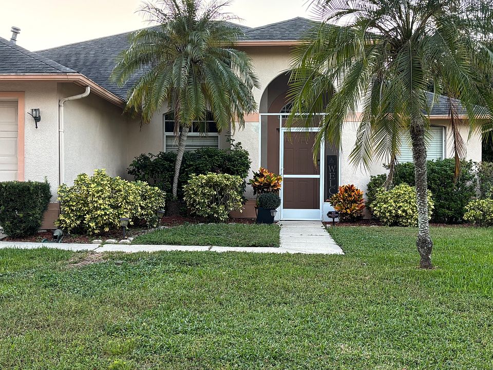 Open and spacious 3 bedroom, 2 bath home with sunroom/porch and fenced back yard. There is a great room and a separate dining room with vaulted ceilings. The U-shaped kitchen has a pantry closet, breakfast counter and eat-in space. The large master suite has 2 walk-in closets and the private bath has a tub, separate shower and 2 sinks. Newer floors, central AC unit and a tankless hot water system included. Enjoy the private, fenced back yard with conservation views. Pets possible with owner approval. Community pool and amenities included.