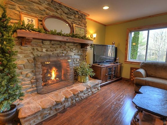 This spacious home is called "Herons Haven Lakeside Chalet". It has been a family home and successful vacation rental for 6 years. There is a peaceful stream with waterfall feature that runs beside the house and under the deck. The property comes with a lot on the lake which you can have a gazebo or picnic table on for added enjoyment. This property is off a paved road with easy access and two large driveways, so affords tons of parking. Completely renovated in 2013 with a new metal roof, new drywall and recessed lighting throughout, new dual zone HVAC, new flooring, and completely renovated kitchen. The home resides in the quiet and peaceful community of Tobacco Branch Village which is comprised of summer residents, a few full timers, and some vacation rentals. The neighborhood amenities include a stocked fishing pond, large picnic pavilion, and expansive grass field for recreation. The location is 5 minutes to Lake Fontana , 15 minutes to Bryson City, 30 minutes to Cherokee.