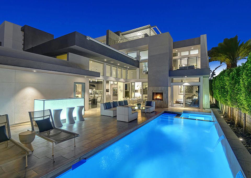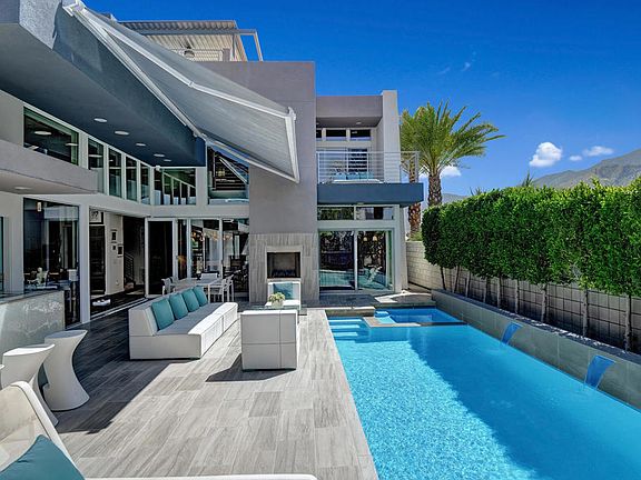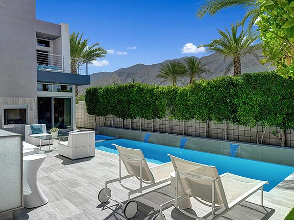 1049 Ziel is a must see end-unit with a private pool/spa, expansive yard, unobstructed mountain views, and no adjoining neighbors to the North, South, or West. This one of a kind property provides picture perfect peace and privacy in the absolute best location within the highly sought after Sol community in the heart of downtown Palm Springs. This fabulous single family home was built in 2015 and is expertly designed with an open concept that creates the perfect flow for indoor-outdoor living. Luxurious amenities and sweeping views of the surrounding desert scenery define this stunning residence. Highly upgraded far beyond its original form, this home has been upgraded and expanded in every possible way. From the smart control system to the owned solar with battery backup this property is highly intelligent as well as efficient. With custom details throughout, this home is next-level and extra in every way imaginable including high-end kitchen appliances, air-conditioned garage, laundry in the master closet and whole house misting system. Enjoy the panoramic views from the covered outdoor rooftop deck with fire pit, wet bar and powder room for the ultimate in entertaining. The master has a large living area that could be utilized in an abundance of different ways. This is the dream Palm Springs getaway where modern architecture meets sophisticated elegance and mid-century design. Complete list of extensive upgrades available upon request or in document section of MLS.