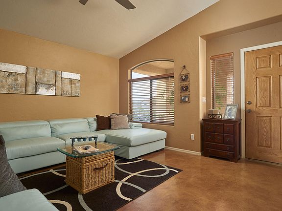 Great Home at a great price! This charmer is located on a spacious corner lot, with generous hardscape and landscape in the backyard, including grass, covered patio and fruit trees. Front yard has spacious covered porch. Step inside to easy care stained concrete floors, decorator paint, soaring ceilings and plenty of living space. Kitchen includes stainless steel appliances, recessed lighting, spacious breakfast bar and loads of cabinet space. Ceiling fans included! Convenient location to shopping, dining, +++! Curtains and rods do not convey.