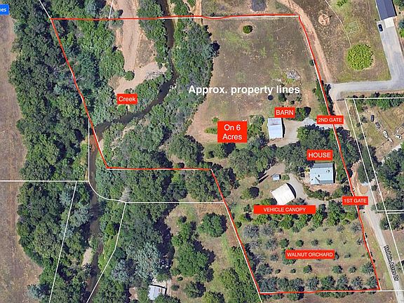 Location, location, location! Imagine yourself living ''in the country'' along Stillwater Creek, and within minutes from down town Redding. This property sits on 6+ acres with mature landscaping and a walnut orchard. Enjoy a move-in ready home with multiple upgrades including flooring, remodeled bathrooms, roofing and HVAC . Large living room with a wood burning fireplace, spacious kitchen with stainless-steel appliances, indoor laundry and a big back porch to enjoy this beautiful setting. Large Barn / Shop and plenty of room for parking.
