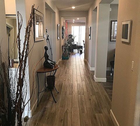 Modern, High Sierra Foothills single story, tastefully appointed, quartz counter tops, back splash, hardwood flooring, Berber carpet, spacious backyard, captivating mountain views, side yard available for RV parking, lounge master bath, accented in cool tones, cool grays, cremes, tans. Hunter Douglas window coverings and shutters. Smart home, east facing backyard, west facing front yard. Only four homes built with the Modena floor plan and this one is just like new. Ideally located in south Reno and no HOA