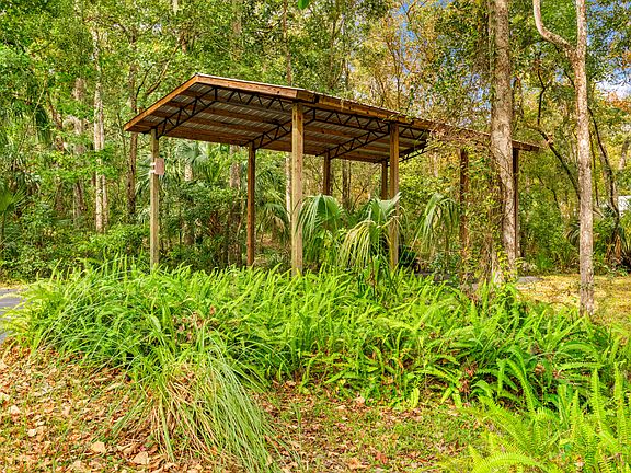 This gated and fully fenced property features a long driveway leading to a spacious open pole barn, ideal for storage or outdoor projects, and a large shed for additional storage needs. An outdoor shower adds convenience, perfect for cooling off or rinsing after a day outdoors or coming home from a day at the beach!