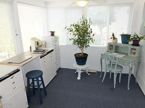 Views Galore! This lovely and immaculate home has it all. Kitchen is terrific with gorgeous cabinetry, plenty of counter space, pendant lighting, laminate flooring, gas range, microwave, and dishwasher. Kitchen is bright, fresh and your breakfast table will fit comfortably too. Great room is inviting with living area opening to dining space. Soft carpet and efficient vinyl low-E windows add to the beauty and help minimize utility costs. Heated and cooled AZ Room is delightful too. Master bedroom suite has soft carpet, large closet, and bright en-suite bathroom. Bedroom 2 is roomy with ample closet space and private door leading to the guest bath. Outside 3 storage sheds/workshops give you plenty of space for your toys. Fenced yard backs to open space and spectacular mountain views.