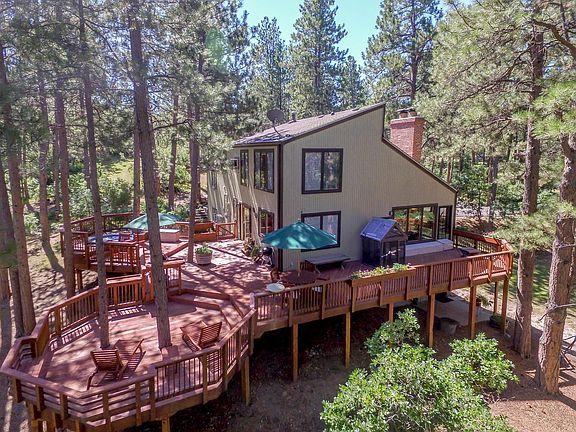 Are you ready to live your life Free of Distraction in a Private and Secluded Pine Forest with Clean air, Blue Skies, Green Trees, Peace and Quiet? Here is a rare opportunity for your very own Private 5 acre Paradise with Easy Urban Access! Gorgeous multi-level Custom Home with over 3600 Finished SqFt. Plus a Fabulous 1200 SqFt. Multi-Purpose separate Studio/ Shop for anything and everything you might imagine! Amazing wrap-around custom deck with built-in spa, custom stained glass, pine beamed ceiling vaults, pine floors and trim throughout...so full of architectural detail. Top level Master Retreat with stunning views of your very own forest and all things nature. Only minutes from Castle Rock, Elizabeth, Parker, Castlewood Canyon State Park and the Historic Stagecoach Saloon. Come experience a Great Community where you can roam freely, with Hiking, Biking and Riding trails literally at your door...Even the Historic Cherokee Trail in your backyard! Take the Tour! Welcome Home!