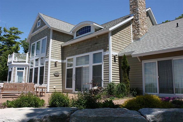 Absolutely stunning Ephraim home with unparalleled views of sunsets, Eagle Harbor, Peninsula State Park, and Horseshoe, Chambers, and The Strawberry Islands. Enjoy the panoramic views from many rooms or from the spectacular tumbled stone infinity patio. Gourmet kitchen with granite counters, Wolf & Sub Zero appliances, warmer drawer, and wine cooler. 1st & 2nd floor master suites, huge finished bonus room (bedroom 4)above the garage, & dramatic great room with 2-story fieldstone fireplace. Professionally decorated by Cheryl Frank and furnished (all included in sale)with tasteful furniture from around the world. Turn key ready to move into and enjoy. Occupied no drive byes please.