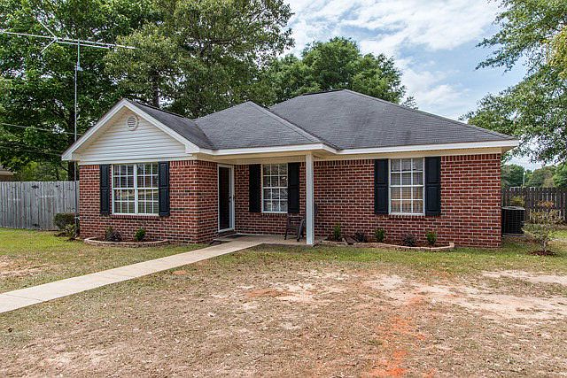 VRM: Seller will entertain offers between $109,000-$119,000. List price equals average of upper and lower range. This home qualifies for 100% financing based on location. Conveniently located off Moffett Rd directly across from MGM and in-between Lucedale and downtown Mobile. This precious all-brick home boasts 3 bedrooms and 2 baths. Large living room has plush carpet and turtle-back ceiling and opens into the kitchen/dining room. Tons of cabinets, and counter tops await you here complete with breakfast bar and a chair rail in the dining room. Master bedroom has trey ceiling, large closet, and 5-ft shower with double seats. HUGE shaded privacy fenced backyard features storage room, fire pit, separately fenced area, storage building, and swing set. Beautifully landscaped corner lot feels like a cul-de-sac with no thru traffic. Call your favorite REALTOR for your personal showing today!