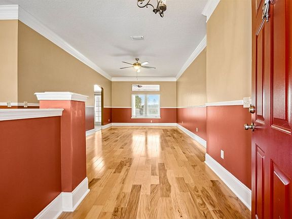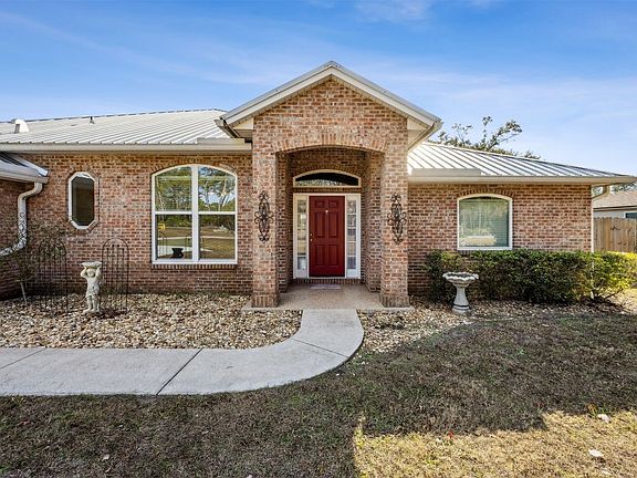Experience the charm of country life just minutes from Jacksonville in this beautifully updated home set on 3.5 acres, complete with a tranquil pond and wooded backdrop. With 4 bedrooms and 2 bathrooms, the house boasts a stunning renovated kitchen and master bath, gleaming hardwood and tile flooring throughout, insulated windows, and an eye-catching linear fireplace. The expanded driveway accommodates several cars, leading to a two-car garage featuring durable shark coating. The rear covered porch is also finished with shark coating, and stepping stones guide you to an above-ground pool and a large 24' x 60' pole barn equipped with an automotive lift, washer/dryer hookup, sink, elevated storage, plus an attached RV shed with independent septic and electrical connections. Additional upgrades include a metal roof (2021), HVAC system (2021), energy efficient solar panels (2022) water heater (2023), pool installation (2024), and water softener (2025). A truly extraordinary property!