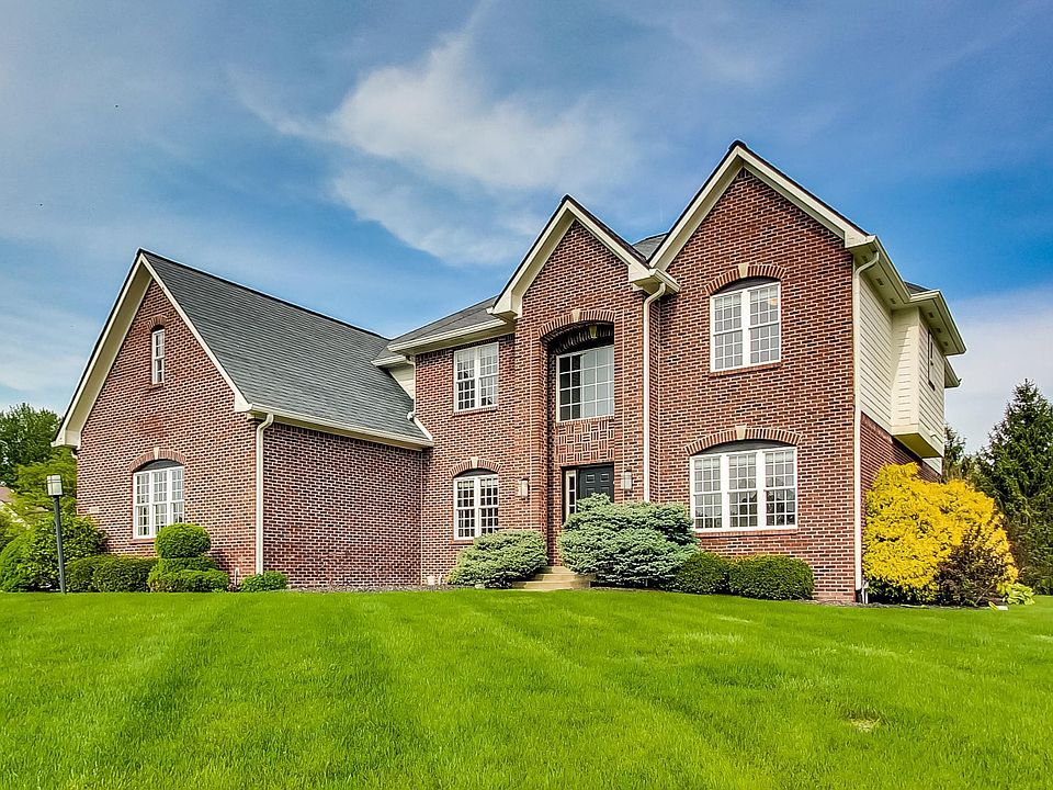 This beautiful custom 5BR/5BA brick home sits on a .53 acre corner lot & cul de sac in the desirable Ashbrooke neighborhood. Main level features a guest room w/full BA, formal dining, office w/built in dual desk & cabinets. Gorgeous updated kitchen w/new SS appliances, granite, large custom center island w/ample storage & seating flows into the bright 2 story great room w/gas fireplace. 2 separate stairways lead up to the primary suite w/spa like BA & large WI closet, +3 addtl BR's & 2 full BA's. Huge basement w/full BA. New carpet & paint throughout. Enjoy sunsets on the new back patio & relax by the gas fire pit. Just a short walk to the neighborhood heated pool, tennis/pickleball court. Close to shops, restaurants+, Carmel Clay Schools!