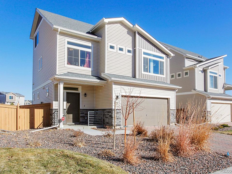 Rare Oakwood Home Surrey model in popular 'Northlawn' area of scenic Reunion subdivision, a master planned community, offering great views of the front range and just a 15 minutes to DIA. 10495 Truckee is only two years old with professional landscaping, all the upgrades and located on a prime lot across from the newly opened Reunion Coffee House, Rec Center with Community Pool and walking paths around the lake! This contemporary home features an open floor plan on the main floor with lots of windows and walk out to patio and private yard. This floor plan is extremely functional with a lovely Master Suite featuring clerestory windows and a 5-piece luxurious bathroom, two bedrooms, a nice sized full bath and laundry room with window on the 2nd floor. The 3rd level is simply bonus space for a theater room, rec room, office or playroom. Conveniently located near E-470 and just about 30 minutes from Downtown Denver. Low interest rate and quick availability make this a great opportunity!
