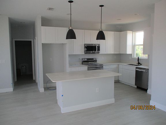 Newly constructed in 2024, 4 bedroom, 2 bathroom home in the desirable community of South Gulf Cove for rent. Modern touches throughout the home with stainless steel appliances, contemporary kitchen island and oil-rubbed bronze fixtures. Attached 2-car garage. Spacious back yard. Washer and dryer included. City water. Small pets under 15 lbs. accepted with additional pet deposit. Conveniently located close to shopping, beaches and boat ramps. Home will be ready to rent July 1, 2024. First, last and security required to move in. Additional non-refundable pet deposit of $150.00 per pet. Lawn care included in rent. Renter responsible for electric and water.