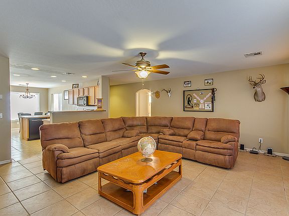 Horse property on 1.25 acres. This stunning house features vaulted ceilings, spacious living and dining areas, tile carpet flooring, ceiling fans in all the bedrooms, two tone paint, and french patio doors.The eat in kitchen features a breakfast bar with matching black appliances, plenty of cabinet space. The master bathroom features walk in closet and a separate exit to the patio. The horse amenities are ideal with covered stalls, and plenty of room to ride. The backyard features an extended covered patio, and a privacy fence, and numerous mature trees.