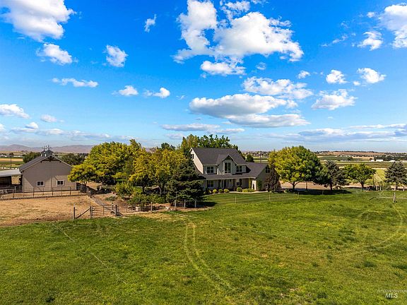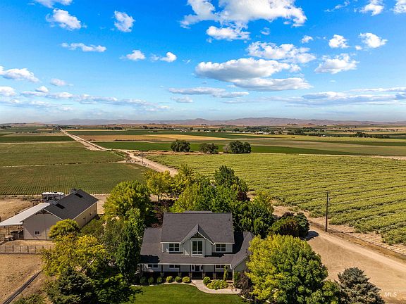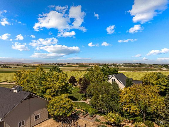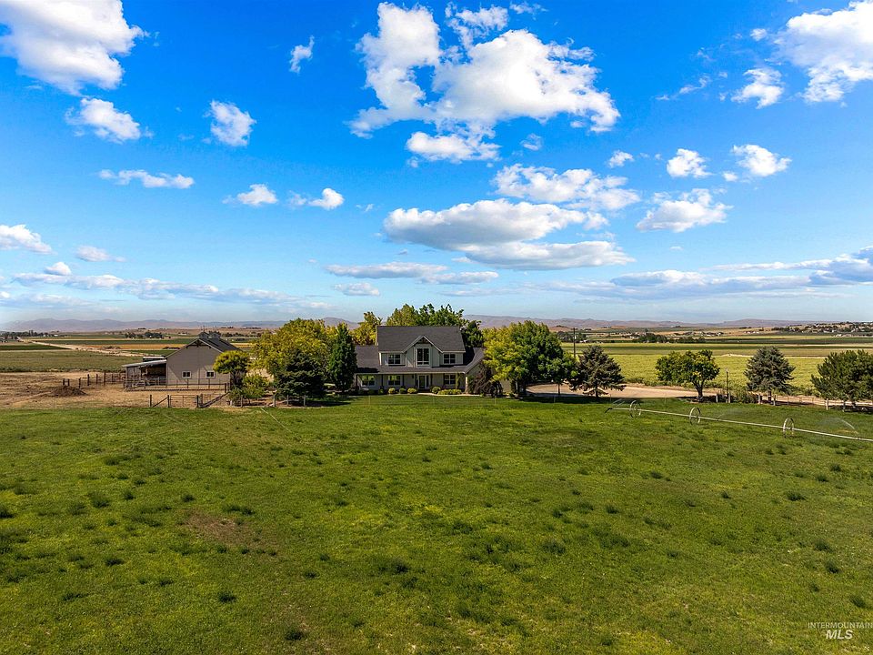 Escape the busyness of the city and enjoy peaceful country living near the lake with beautiful views and surrounded by farm ground! This 10acre property consists of 2 parcels of which 7 acres are fenced/irrigated with wheel lines and a 10HP field irrigation pump. 32 x 64 shop that is heated with a 200 amp and 12' doors. Fenced horse arena, 3 covered horse stalls & feeding alley and covered hay storage. 30 Amp RV hookup and sewage dump. Custom one owner home with 2x6 construction that has been meticulously maintained. Hardwood floors recently refinished, huge living room with propane fireplace, central vac, gourmet kitchen that includes built-in refrigerator, double ovens, oversized cooktop and large island. Two master bedrooms, flex room, 3rd level den & family room. Newer roofs on shop & house, new water-to-air furnace/AC, and newer exterior paint. Enjoy entertaining in the private park-like backyard with stone patio, mature landscaping, garden area, fruit trees. A must see!