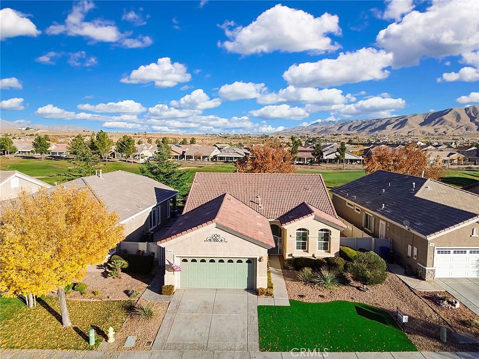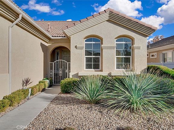 Welcome Home to this Beautiful Turn-Key Property on the Ashwood Golf Course! This immaculate 2-bedroom home (with an optional third bedroom or office) features 2 full bathrooms and 1,544 square feet of living space, plus a 2-car garage. The open-concept design seamlessly blends the dining and family rooms, offering breathtaking views of the golf course. The kitchen boasts a large island with Corian countertops, a breakfast bar, a spacious pantry, and ample cabinetry. Enjoy cozy evenings by the fireplace in the family room with upgraded plantation shutters, a built-in entertainment center, beautiful flooring and abundant natural light. The spacious primary suite includes a luxurious ensuite bathroom with a water closet, double sinks, a walk-in shower, and an oversized walk-in closet. The second bedroom and bathroom are situated on the opposite side of the home for added privacy. Both the front and back yards are fully landscaped with mature trees, plants, sidewalks, rock scaping, and artificial grass. The backyard features an oversized covered patio, vinyl fencing for privacy, and stunning views of the golf course and mountains, perfect for enjoying desert sunsets year-round. Additional features include a secure gate at the entrance for additional peace of mind, an indoor laundry room with a sink and extra storage, plus recent upgrades including a NEW A/C unit, NEW water heater, and NEW dishwasher. Don’t miss the opportunity to own this incredible golf course-view home before the holidays!