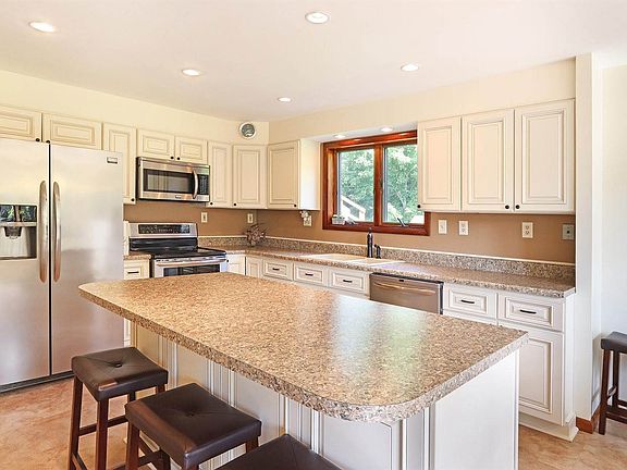WOW! Check out this energy efficient home with pole barn in excellent condition on a paved road just 15 minutes north of Grand Rapids. Home sits 300 feet off the road with private setting, 4 beds,2.5 baths, bonus room above garage for office,rec or hobby. This modern designed home was built to conserve energy with hot water baseboard heat, heated bath floors, passive solar southern facing Anderson Low E windows and home is well insulated. The original owners have maintained this home very well and have recently updated the kitchen cabinets, appliances, flooring, well, and roof! There is a 30x30 pole barn and property is large enough for a horse, is partially wooded, and views Cedar Creek. Garden areas, patios, deck. Across street from Algoma Sports complex with playground and ballfields