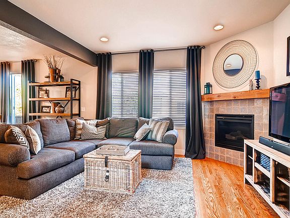 Impeccably maintained home on a quiet cul-de-sac in Meridian Village. Enjoy a sweeping open floor plan accented by gorgeous hardwood flooring, modern recessed lighting, neutral paint & brilliant natural light. Living room is anchored by a cozy gas fireplace that makes it a perfect place to spend a chilly evening. Well-equipped kitchen delights with an island with seating, pantry, under-cabinet lighting & stainless steel appliances including a gas range. All 3 sunny bedrooms are conveniently located on the upper level. Master suite includes a walk-in closet and a private full bath with double sinks and a separate WC. Secondary bedrooms have charming window seats and share a full bath with double sinks. 600+ sq ft unfinished basement provides options for storage or future living space. Dine al fresco in the private backyard that offers a deck, flagstone patio & newly stained and painted fence. 100% move-in ready! Wonderful location in a quiet community with beautiful walking trails, a pool, park & playground. Easy access to E-470 and I-25 make for painless commuting.