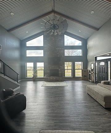 Beautiful stone fireplaceGas rangeLarge bedroomsFabulous laundry roomWood floorsStainless steel appliancesFarmhouse windmill ceiling fans