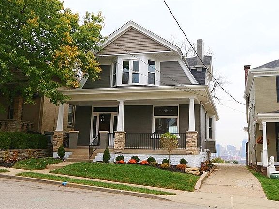 Spectacular Cincinnati skyline view from this 2 story on the hill in Newport. 3 bedrooms (each with 2 walk in closets), detached garage, huge eat in kitchen. Full basement. Beautiful original woodwork through out. Large entry foyer with split staircase. Walk Score of 71 out of 100. This location is Very Walkable so most errands can be accomplished on foot.