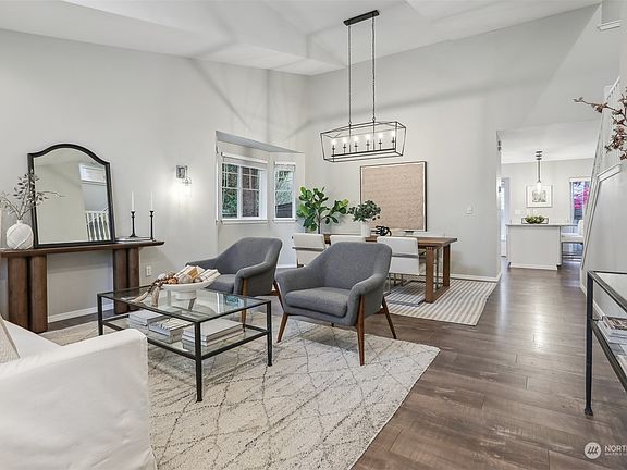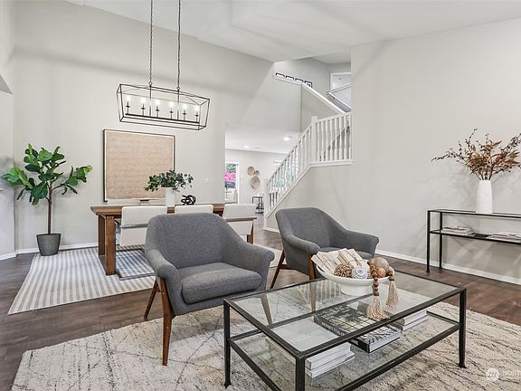 Nestled in a serene setting, lies this stunning home w/ an ideal floor plan. As you enter, you are greeted w/ vaulted ceilings & abundant light. The updated kitchen is a chef's dream w/ a pantry, quartz counters & all newer SS appliances. Open to the family room, this warm & inviting space is great for entertaining or a cozy movie night. Powder room & laundry finish off the first floor. Upstairs you’ll find the coveted 4 bedrooms all generously sized. The primary suite features high ceilings, walk in closet, & 5 pc bath. Second upstairs bathroom features new quartz counters & updated lighting. Outside enjoy a fully fenced yard w/ private patio space & playhouse/shed. With A/C, 2 car garage & convenient location near Mill Creek Town Center!