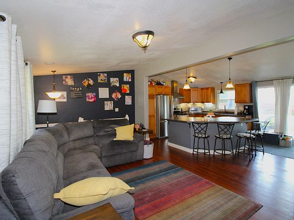 Check out this cozy ranch style home. As you walk in you are greeted by the open concept main living area. The living room has a large picture window to let in natural light. The kitchen as stainless steel appliances and bonus built in wine fridge in the island. The sliding glass door has access to the backyard. The master bedroom has a large walk in closet. Bedroom #2 has dual closets. The main floor bathroom features a unique tile floor and a tiled shower with glass door. There is even the convenience of a laundry shoot. Downstairs the large "L" shaped family room is perfect for movie/game nights. The third bedroom has an egress window. There is also a full bath and large laundry/utility room. The large fenced backyard is perfect for enjoying the outdoors. There is a fire pit, storage shed, and the fence even has port holes for pets to see what is going on in the front. Park your cars on the double driveway or in the detached one car garage. Recent upgrades include: new concrete driveway, metal roof, and new front security door. Call your favorite Realtor today for a private showing.