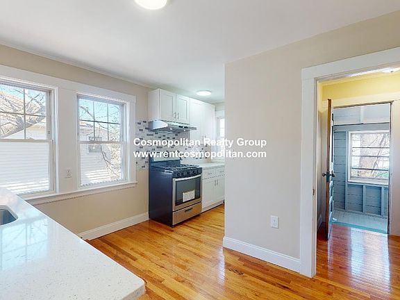 Second Floor suite boasting Gleaming hardwood floors Double Room Living Room can be sectioned for a home office! 3 Season Front and Rear enclosed porches (not heated) offer MORE space than the measured 1000 sf. A commuters dream near Wellington Train Station, Bus Line, Rte 28 & Rte 93! Cafes, Restaurants, Shopping and Park. TWO car off street parking. NEW Quartz and Stainless kitchen is fully applianced. Full Bathroom Modern Dining Room with built in cabinet shelving and drawers! TWO Bedrooms- each has ample space for Queen beds and bureau Washer and Dryer for your use in lower level. Enclosed front and rear porch Shared yard space. Tenant pays gas heat, hot water and electricity. Considering well cared for and behaved pet, breed restricted with great tenants! First, Security and 1/2 month broker fee. Deposit with Application Seeking prospective tenants with Great Credit, Great References and a Combined Gross Household Income $95,000+ View our 3D tour attached and at rentcosmopolitan.com 3 3 9 2 2 1 5 4 1 2 COSMOPOLITAN TEAM Realty ONE Group Cosmopolitan 23 Salem Street Medford, MA 02155 3 3 9 2 2 1 5 4 1 2 3D tours, details, our terms of service and application at RentCosmopolitan .com Thinking of buying a home now or in the future? See all homes for sale and what they sold for at CosmopolitanRealEstate .net