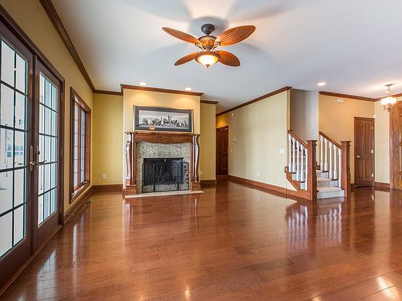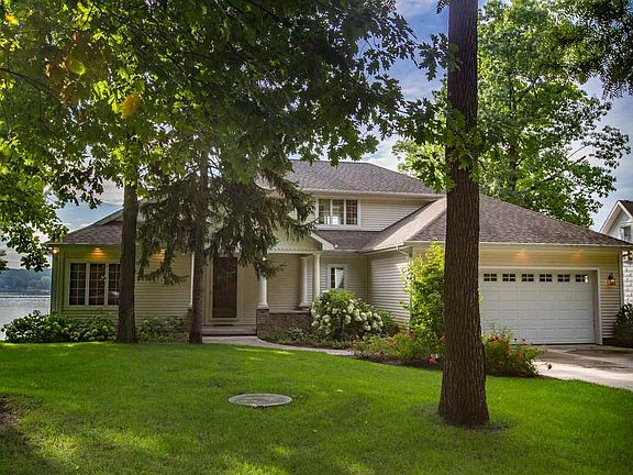 A gorgeous lakefront setting for this spectacular home with 156 feet of seawall frontage, extensive dock and boat house by the water. The boat house is being sold as is. Walk in and feel right at home with a wonderful open floor plan. The living room has a wood burning fireplace with marble surround and wood mantel. French doors lead to the enclosed porch with outstanding lake views. Hardwood is feature throughout most of the home. There are three spacious bedrooms and 3 additional private sleeping rooms. The master suite is on the main level with a gas log fireplace and large walk-in closet. All closets have organizers except the closet under the stairs on the lower level. The open family room has a 2nd kitchenette/wet bar, a 3rd fireplace and french doors that lead to the covered patio. The home is beautifully landscaped and the beach is perfect!