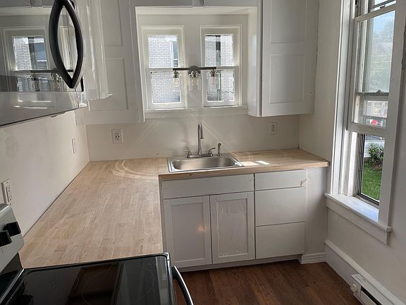 New, Fully Renovated, 3-bedroom,1-bathroom apartment, located on the second floor of the building. This apartment has all new features. The renovated kitchen features brand new stainless steel appliances such as a stainless steel refrigerator, stove, and hanging microwave, as well as new cabinets, butcher-block countertops, and vinyl plank floor. The fully renovated, brand new bathroom features new stand-up shower, vanity, medicine cabinet mirror, toilet, and vinyl plank floors. The flooring is all updated with either vinyl plank in the kitchen and bathroom, new carpet in the bedrooms, or poly'd hardwood floors in the living room. There are brand new ceiling fans, led lights, new USB and USB-C-ready outlets, and new rocker light switches. Enjoy the ease of doing laundry at home with a shared in-building coin operated washer/dryer on the same floor! Available now! Tenants are responsible for Electric, which is appliances, baseboard heat, and hot water. Appliances included: Electric Oven/Range + Refrigerator + Microwave Pets are considered on a case by case basis with an additional fee! Parking Space available for additional fee! Utilities included are Water, Sewer, and Trash. Landlord is also responsible for Lawn/Shrubbery Care & Snow/Ice Removal. Tenants are responsible for Electric. Total Monthly Household income should be 3.0 times rent, supporting documentation will be required. 1st month rent required up front, and security deposit required. Emphasis on credit score.
