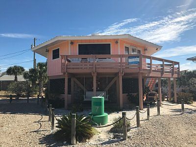 Unique 2 BR, 1 BA home just steps from serene waters of the Gulf of Mexico. With the cozy circular layout this home is ideal for an investment property or your own personal beach retreat. On the bottom level you are greeted with a landscaped driveway and pathway to the home, an entertainment area equipped with a tv, bar area/dining area and even your own personal outdoor shower. Check out the 3D Tour and fall in love with this home!