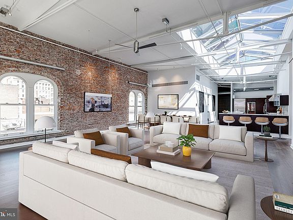 The Pinnacle of Loft Living in Philadelphia. Welcome to the Penthouse at the White Building. A roughly 3150 square foot super deluxe 2 bed 3 full bath condo with ROOF RIGHTS! Spectacular at every turn! Soaring 13 Plus foot ceilings, a roughly 30 by 15 foot mega skylight, 14 oversized windows combine to create one of the most sensational spaces in Philadelphia. The exposed brick in conjunction with the sweeping white walls make this condo an art collectors dream. If you are an entertainer this is heaven. The expansive kitchen separates the living and dining areas from the bedrooms. A 9.5 foot marble island is your center piece. Abundant storage and pantry cabinetry. Top of the line fixtures and appliances including a commercial vented Wolf range hood. You’ll enjoy cooking here under the Skys above.. literally! Off of the kitchen you’ll find an office area for the “work from home” lifestyle. Passed the kitchen and through a handsome custom swing door you’ll enter a primary suite that you will never forget! Grand and luxurious, this is a dramatic bedroom oasis. 2 Custom glass barn doors. A stone TV wall. A walk-in closet the size of a bedroom with a beautiful custom fit out. A 5 piece spa bathroom with a gorgeous marble vanity, automated toilet, stunning lighting detail, a soaking tub and a steam shower. Off of the kitchen you'll find a very nice guest bedroom with sunset and skyline exposure, a high-end electronic murphy bed and a cool 4 piece bathroom. Sun rise to sun down you’ll be amazed by how the light shines through out the entire condo. Southern and western light! Features include: Control 4 system for HVAC, Lighting, Sound. Electronic rollers shades throughout. Electronic Milano Murphy bed / couch combo. Its hi-tech! This space could be turned back into a 3 bedroom if preferred which offers the next owner optionality. Live in the heart of Midtown and above the amazing restaurant lineup this area has to offer. Including El Vez, Sampan, Alpin Rose, Prunello, Barbuzzo and Pearl & Mary. The White Building is surrounded by tons of exciting brand new developments that will elevate this neighborhood encompassing Market East to new heights. Over ONE BILLION of investment within 2 blocks. This boutique condo building was originally constructed in 1867 as factory space for the SS White Dental Manufacturing Company. It houses a gym and you'll enjoy low condo fees. Parking can be rented at any of the many surrounding garages.