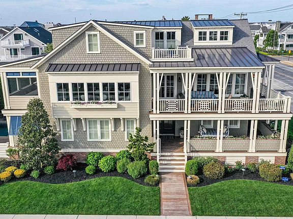 ONE OF ONE. One of the single most recognizable corner properties on 7 Mile Island, this masterpiece was intricately designed by Asher Slaunwhite, meticulously built by Seaside Developers, and expertly finished by William Bales and Company. This incredibly unique location is just four homes removed from the 35th Street beach path, allowing for view corridors that are superior to many beach block properties. The elevated seashore architecture is classic Asher Slaunwhite, combining sleek lines and natural materials with decorative rail accents, Bermuda shutters, and a lush landscape, all of which capture the imagination of everyone who passes by. The interior is every bit as exquisite as the exterior, with the renowned combination of Greg Hill and Bill Bales ensuring that every square inch offers both maximum functionality and timeless style. The quality is immediately evident after entering the front door, as a large foyer with custom millwork greats your guests. The First Avenue section of this level offers beautifully finished Jack and Jill bedrooms, which share a sensational bathroom. Down the hallway sits the laundry room, a powder room, and two more large bedrooms, both with en-suite bathrooms. All four bedrooms on this level offer cabinet quality built-in closets, striking millwork, and plantation shutters. The rear, first floor family room is a perfect secondary entertaining space. The walls and ceiling are adorned with intricate moldings, a wet bar provides refrigeration, ice, and built-in cabinetry, and there is enough seating for multiple families to enjoy a movie or a ball game. A wall of sliders leads out back to a covered, rear porch, and ultimately down to a private rear yard entertaining space. This area is lined with 20’ tall Leyland Cyprus trees which, along with numerous other planters, create a picturesque backdrop against the Ipe pool deck. Whether you are lounging on the chaises or on the tiled sunshelf in the pool, this sun-soaked rear yard is extraordinary. Back inside, a Stark Carpet stair runner and a breathtaking railing design lead your guests to one of the best second floor great rooms that you will ever see. This entire level is dedicated to entertaining, allowing for generations of your family to comfortably coexist in each room. The dramatic, two story living room is anchored by a gas fireplace flanked by built-in cabinetry. This space features two separate seating areas, applied moldings and reclaimed wood accents, and multiple access points to the wrap around, covered deck. The kitchen and dining areas are oriented towards the bay side of the second floor. The chef’s kitchen is straight out of magazine. The range wall features a Thermador, 48 inch range with a leathered Blue Bahia granite backsplash flanked by floor-to-ceiling Sub Zero refrigerators. The same Blue Bahia granite is bookmatched on the 12’ center island, which is accented by a custom tray ceiling and custom lighting. Two Shaw farm sinks, two dishwashers, 2 refrigerated drawers, an ice maker, a wine refrigerator, and a massive pantry complete this incredible space. The dining area features a custom, 12’ table that mirrors the kitchen island, and is accented by Neiman Weeks chandeliers and wall lanterns. This area offers easy access to a western facing, screened-in porch with distributed audio that is the perfect spot to dine as the sun is setting. Next to the exterior dining area is a built-in, Lynx grill complete with a ventilation system and outdoor cabinetry. An exterior stair from this space leads down to the pool area, allowing the primary entertaining space and the pool area to be interchangeable all day long. The second floor is rounded out with a powder room, storage, and a flex space that is currently utilized as a gym (this area could easily be converted into a 6th bedroom). The third floor is entirely dedicated to the primary suite. (Continued)