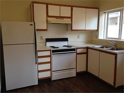 Corner studio unit on the ground level available now! Full bathroom, kitchen includes range, range hood, refrigerator. Carpet and vinyl flooring. Lots of light with three windows and blinds. High ceilings make this unit feel spacious! Laundry is right next door. Security deposit $850. Water/sewer/garbage included, tenant pays electric. No pets, no smoking on property. One year lease required. One parking space available or park on street. Please email for more information. We do not use Zillow applications, please request information via email. Water/sewer/garbage included. Tenant pays electric. One year lease required. No smoking on property. No pets.