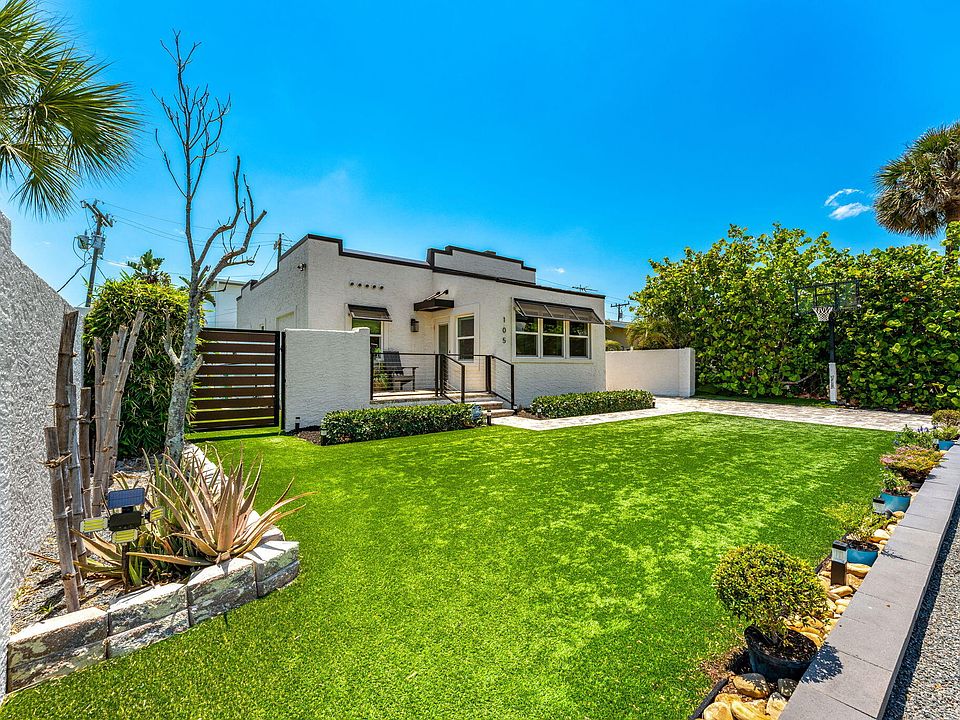 Welcome to, ''Florblanca'', the 1st house from the beach where the charm of a California beach bungalow meets the bliss of ocean living. In 2021, this home underwent a complete renovation all while preserving its charming exterior and enhancing it with modern touches. The interior was taken down to the studs & boasts new windows, roof, AC's and water heaters. The main residence features an open, sunlit floor plan with two cozy bedrooms, two full baths & a large laundry room. The detached air-conditioned garage/casita includes a full bath & is plumbed for a kitchenette.The extended driveway is ideal for boat/RV parking.Enjoy the maintenance-free landscaping featuring artificial turf & a putting green. No HOA! Located directly across from the beach & Nance Park, you're perfectly placed to dive into local events, & walk to nearby cafes, shops, fitness centers & A-rated schools.Come & experience the simple, serene Florida lifestyle in the heart of Indialantic at ''Florblanca''