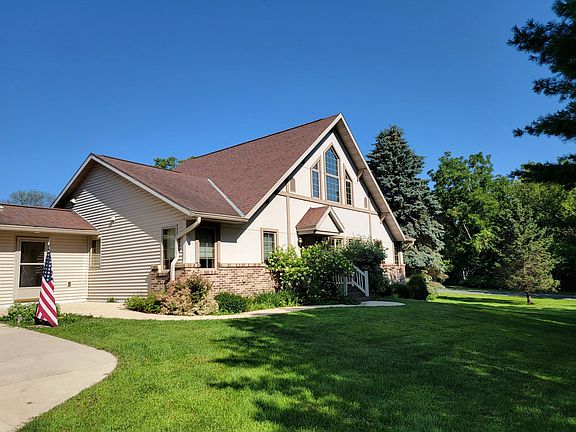 Custom built home on edge of town offering space both inside and out! The high vaulted living room opens to a loft family room making the woodsy yard enjoyable on both levels! The open concept is great for cooking and gathering family & friends. Mainfloor offers a master suite with private bath, plus 2 bedrooms, bath, and laundry. Lower level is part finished offering daylight windows, home office, storage, with bonus areas flexible to your lifestyle. PLUS a 3 car att. garage with shop and storage space. The yard offers a couple young apple trees, raspberries, and garden space, with garden shed. The home features all in-floor zoned heating and central air conditioning. Appliances included.