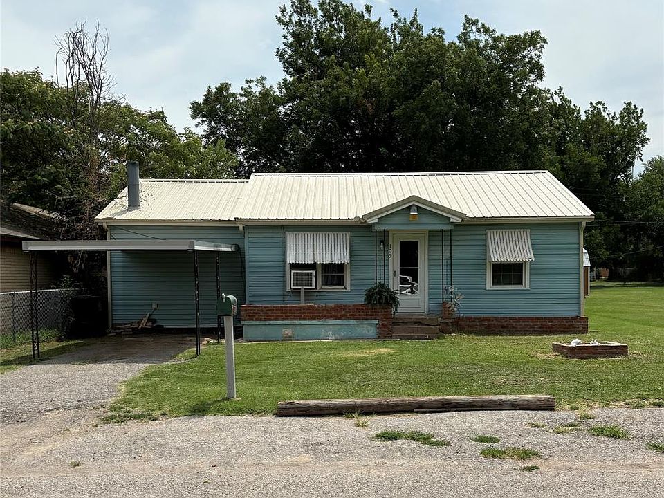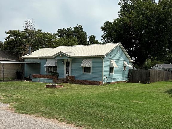 This home in Verden, a small suburb about 9 miles from Chickasha, offers lots of extras for the price! Great investor or owner occupant property. The home has a large living area with a flex space that could be a 3rd bedroom or a nice second living space with a wood burning stove attached to an large indoor laundry room with extra storage space. The large kitchen has a great size eat-in area and a pantry/storage area. There are two large secondary bedrooms each with a full bathroom. There is an extra storage room just by the back door that leads to a covered patio and large fully fenced back yard with a shed. There is an alley in the back for extra parking and or backyard access. (Mail is delivered to this address.) This home will need to be a conventional loan type or a cash purchase. Metal roof is about 5 years old. Hot Water Tank is newer. Home has a basement.