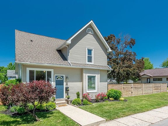 This home is straight out of a magazine! It is in a great central spot in Winona Lake and has gorgeous living spaces both inside and outside. You’ll be within walking distance to restaurants and shops at The Village, the trails and Winona Lake Park, Grace College, and all the fun events including the weekly Farmer’s Market. Beautifully landscaped, this home sits on a large corner lot that is fenced in for privacy. When it comes to entertaining, this yard offers shade and grass to play, dining and lounge space on the patio, and even a fire pit when it’s time for smores. This alluring outdoor space is enjoyable from sunrise to sunset! Through the front door you’ll be welcomed into a sitting room with large windows and wood accent walls. Hardwood flooring throughout the home as well as beams and additional wood accents add to its warm character. The charming open concept main floor invites you to come on in and rest. Ample recessed lighting, large windows, and new light fixtures create a well lit environment. The kitchen features a large farmhouse sink, stainless steel appliances, generous cabinetry, and a breakfast bar. Recessed bookshelves store your favorite cookbooks and the walk in pantry is close at hand. This kitchen is well thought out and is sure to delight the chef in your family! After dinner, continue the conversation with your guests in the living room. On the other side of the main level is a bonus space that could be used as an office or playroom. A powder room with the washer and dryer is offered beside it. Up the original wooden staircase you’ll find the owner’s bedroom suite beckoning you to to relax. It offers plenty of storage and closet space but you’ll be most excited about the amazing en-suite! Dual sinks, tiled walls and floors, and the rain shower will make you feel like you’re at the spa! The top floor includes two more bedrooms, one currently set up as a home office with a Murphy bed that will instantly transform the room when guests are visiting. An attractive second full bathroom with dual sinks and tiled tub surround is available. This home is sure to delight with its desirable location and stunning features.