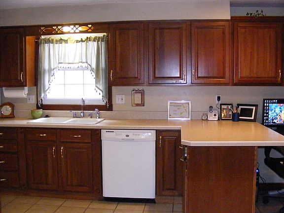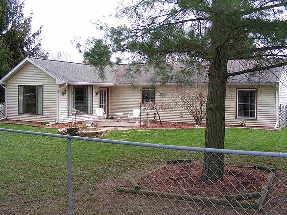 Priced to sell!! Bright and cheery ranch with a great stamped patio and sidewalks plus landscaping with lots of colorful flowers bordered by a chainlink fenced-in yard for pets and small children. Three bedroom, two full bath home with a custom-cabinet cherry kitchen connected to dining room with woodburning brick fireplace and large closet for games, etc. is ready for your occupancy! Kitchen, with an integrated desk area, includes a file drawer for convenience also has a breakfast bar and pantry cabinet. All kitchen appliances are included. Master suite bathroom includes laundry area and linen closet. Enjoy beautiful views of backyard from the cathedral ceiling family room via the large windows and full-view entry door to the patio. Street is a cul-de-sac thus it is quiet and safe for your family.