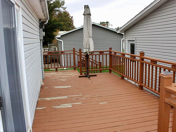 Convenience is the key with this one level, 3 bedroom, 2 bath ranch home. With an awesome 3 car garage and a large deck, you can choose to spend your time tinkering in the garage or relax with your favorite beverage on the deck. One bathroom features a walk-in shower or you can soak in the tub/shower combination in the second bath. There is an open concept between the living room and kitchen. This is a Champion manufactured home sitting on a block foundation. New pex waterlines, new roof on the garage in 2020. Call a realtor today to schedule an appointment for your private showing.