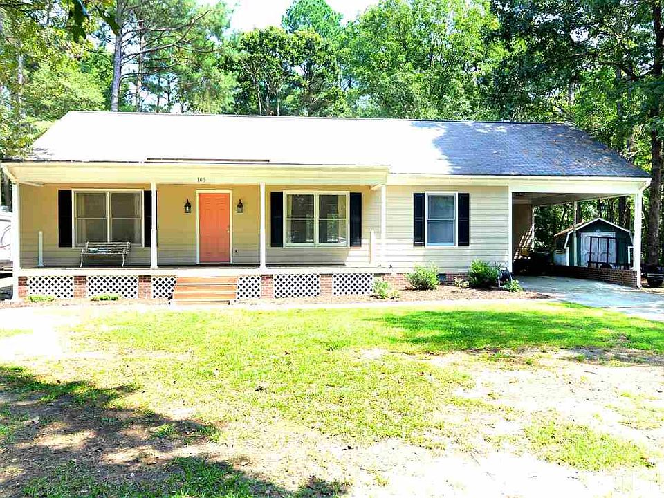 Adorable ranch style home nestled in a shaded cul-de-sac. This home features a split floor plan with large bedrooms, a spacious living room & kitchen including stainless steel appliances, a single car carport, oversized rear deck (perfect for entertaining) and a fenced in back yard with a storage shed and a rocking chair front porch. Fridge, washer & dryer convey with property. Convenient to HWY 70.