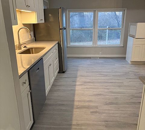 Family home with newly completed top to bottom renovation now available to rent! All new appliances (including washer and dryer) new flooring, paint, cabinets, closets and bathrooms! Three bedrooms with an extra sleeping area. One car garage.