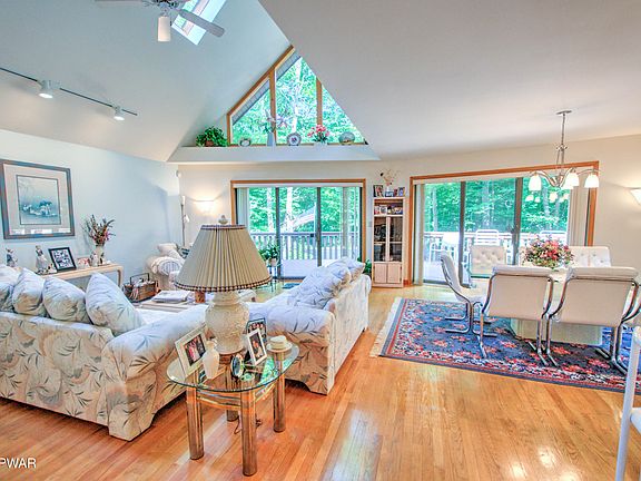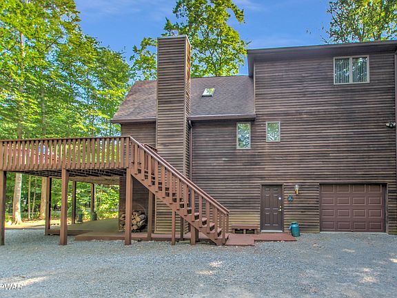 Meticulously maintained this 3 bedroom, 3.5 bath chalet in Tanglwood Lakes is the perfect year round or vacation home! This bright & airy home features an open floor plan with cathedral ceilings & a wall of windows, hardwood floors, a spacious living room, dining and kitchen. The master suite is located on 1st with a large ensuite bath (jacuzzi tub) & walk-in closet - French doors to the deck. The laundry & half bath are just off the hallway. Relax in the 2nd floor loft or retreat to the 2 bedrooms and a full bath. The lower level is meant for entertaining with a bar & wet sink, family room, wood stove, full bath & access to the spacious garage. The exterior features a wrap-around deck, yard & large driveway for plenty of parking. Original owners!